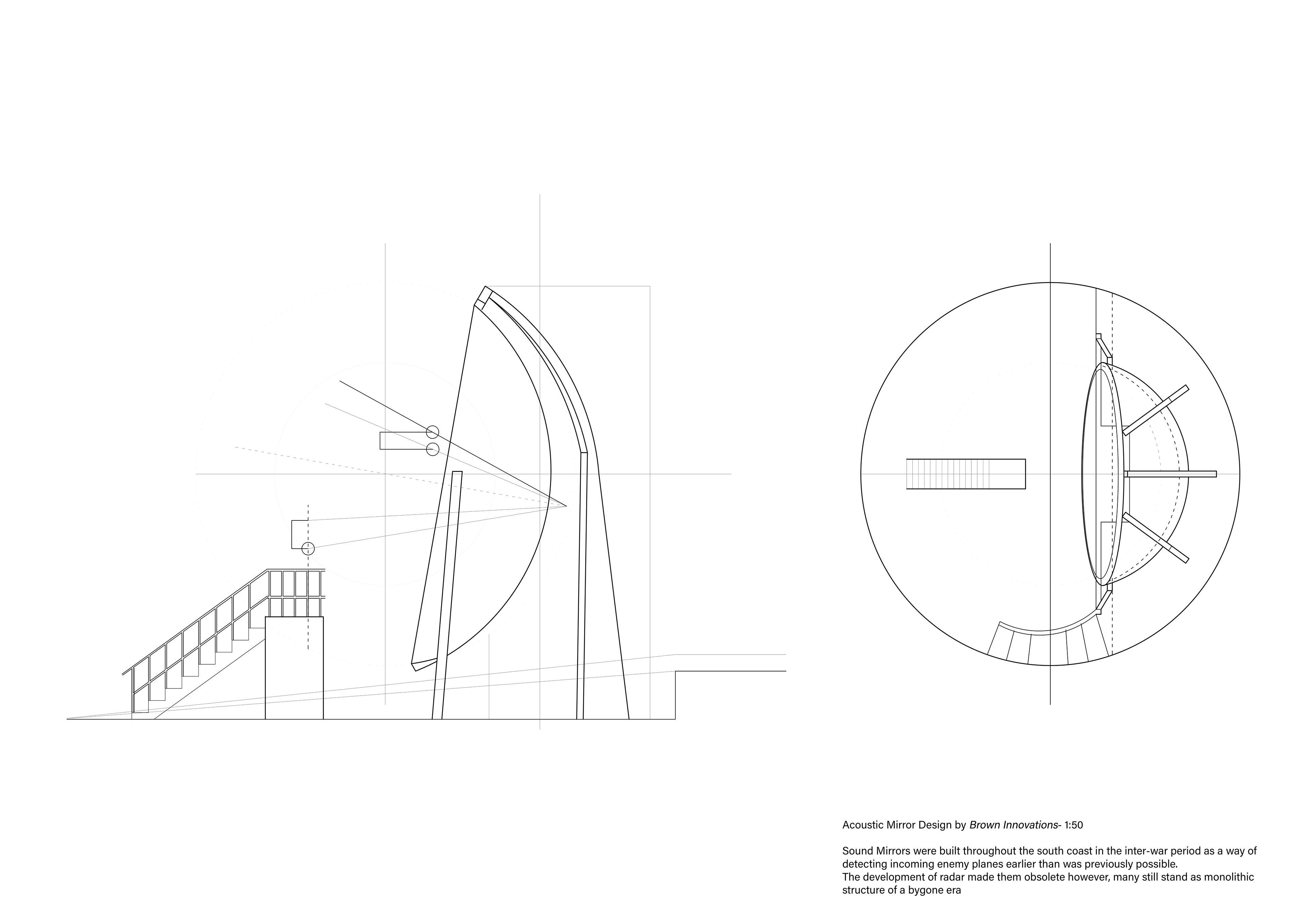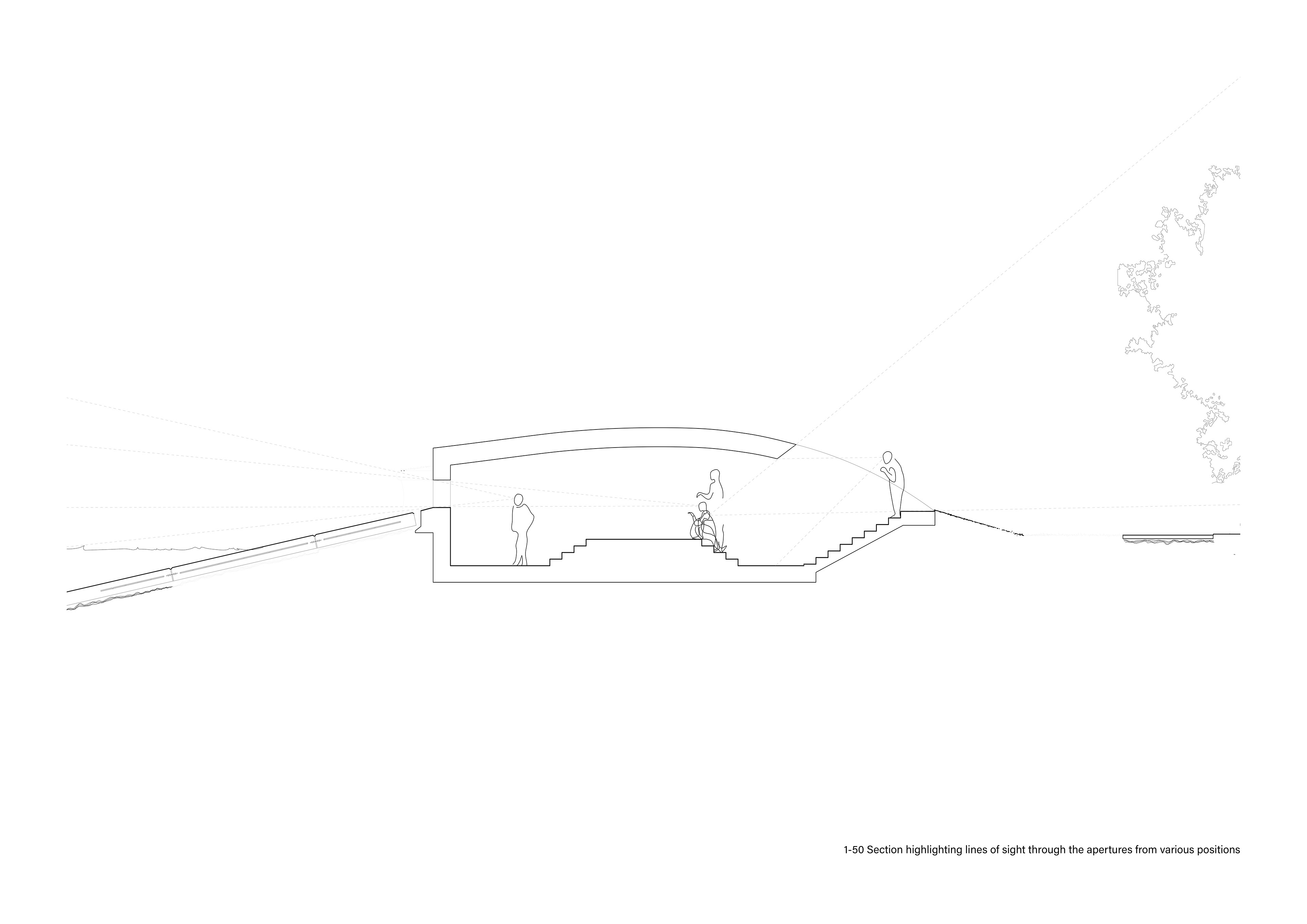 The design was inspired heavily by the post-war infrastructure that dominates the reservoir site in terms of materiality, while conceptually it takes cues from concrete 'Sound Mirrors' that were used in World War 2 to try and pinpoint enemy aircraft. In a comparable manner, the shelter allows visitors to pinpoint specific views from across the water, be it surrounding buildings, passing trains or the skyline of the City of London beyond.